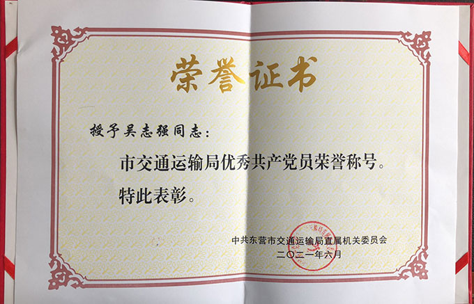 • 吳志強榮獲”市交通運輸局優秀共產黨員“榮...